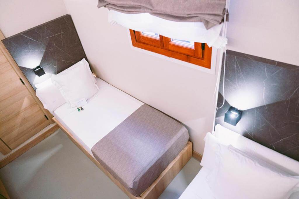 Eleva tu confort con nuestra habitación de categoría superior de 15m2. Según la disponibilidad que haya, podrás encontrarla disponible con cama de matrimonio o dos camas individuales. Esta habitación cuenta con un baño privado y amenities y vistas al exterior.