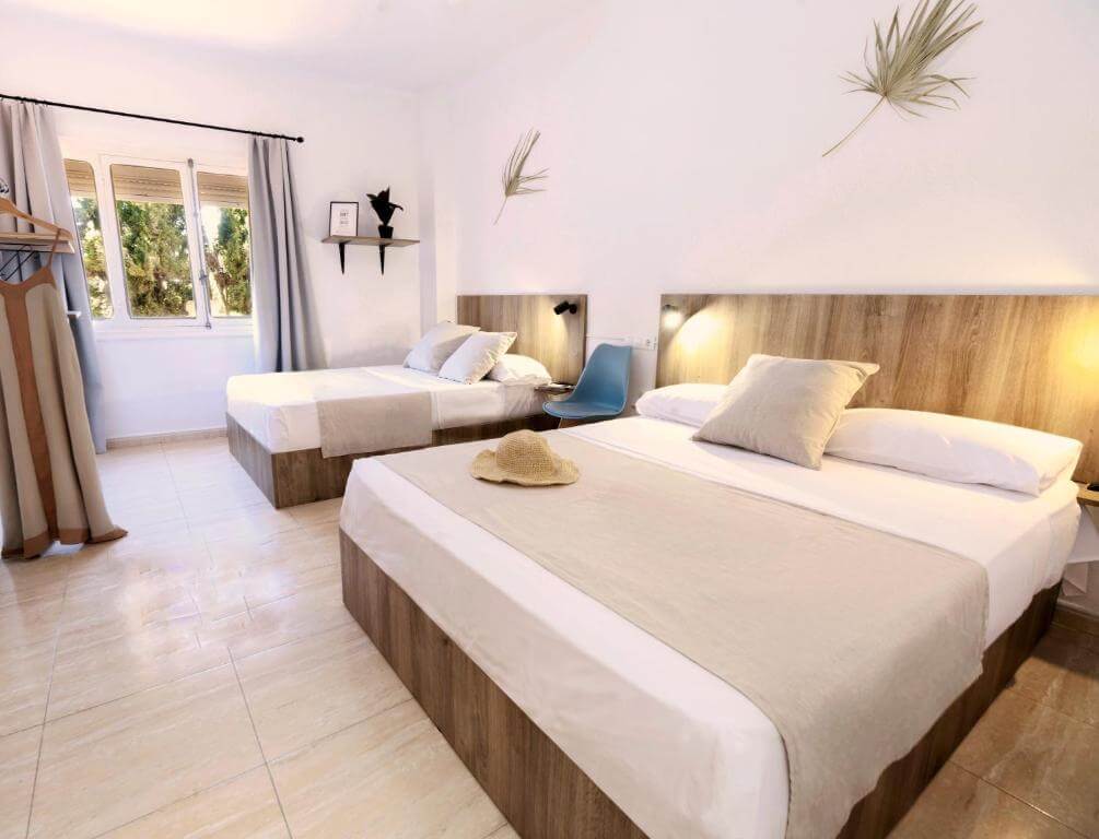 Habitación de 20 m2 perfecta para pasar unos días en la playa. Cuenta con una cama doble y una cama individual, aire acondicionado, balcón perfecto para relajarse, TV de pantalla plana, baño privado y amenities.