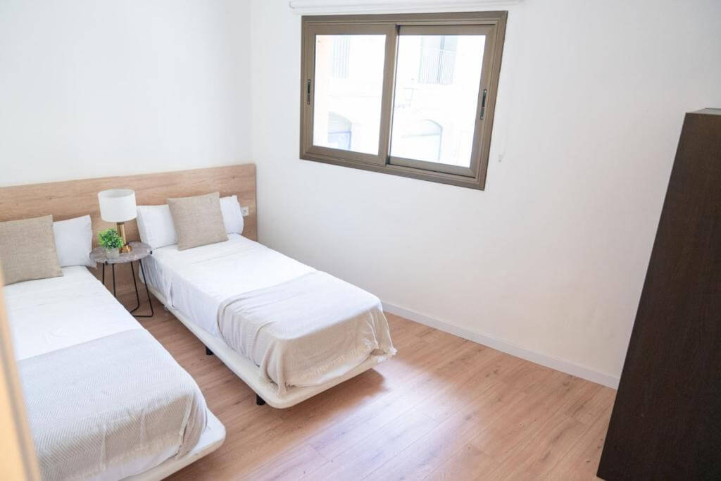 Apartamento de 3 dormitorios con 95m2 y capacidad hasta 7 personas, ideal para familiar o grupos de amigos, el apartamento es interior y dispone de 3 camas individuales, 1 cama doble y un sofá cama doble + 2 baños totalmente equipados.
